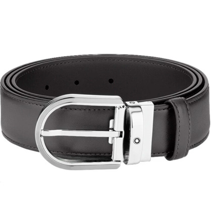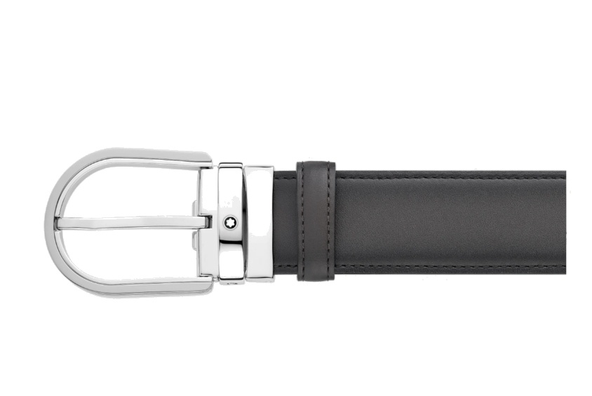 Кожаный ремень с пряжкой в форме подковы серого цвета 35 мм от магазина премиальных ручек Premium Pens в Коврове.